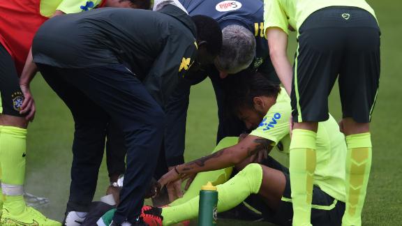 Neymar rolled his right ankle in training and looked to be in some discomfort, leading to concerns about his fitness when Brazil take on Croatia on Thursday.