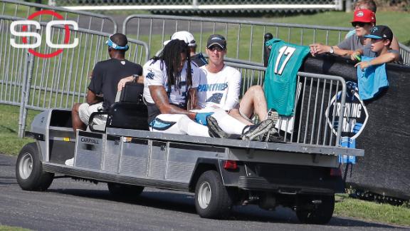 The Panthers receiver went down when he tried to make a cut against Miami defensive back Don Jones on a play in which there was no contact. He stayed on the ground for several minutes before being carted off.