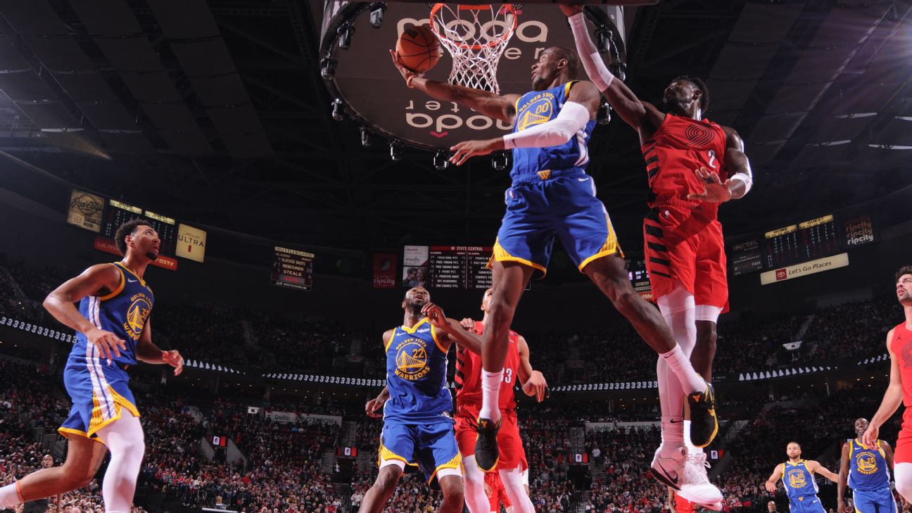 PORTLAND, Ore. -- Gary Payton II and Kyle Anderson crouched at the scorer's table with three minutes left in the first quarter of the Golden State Warriors' season opener against the Portland Trail Blazerson Wednesday night.