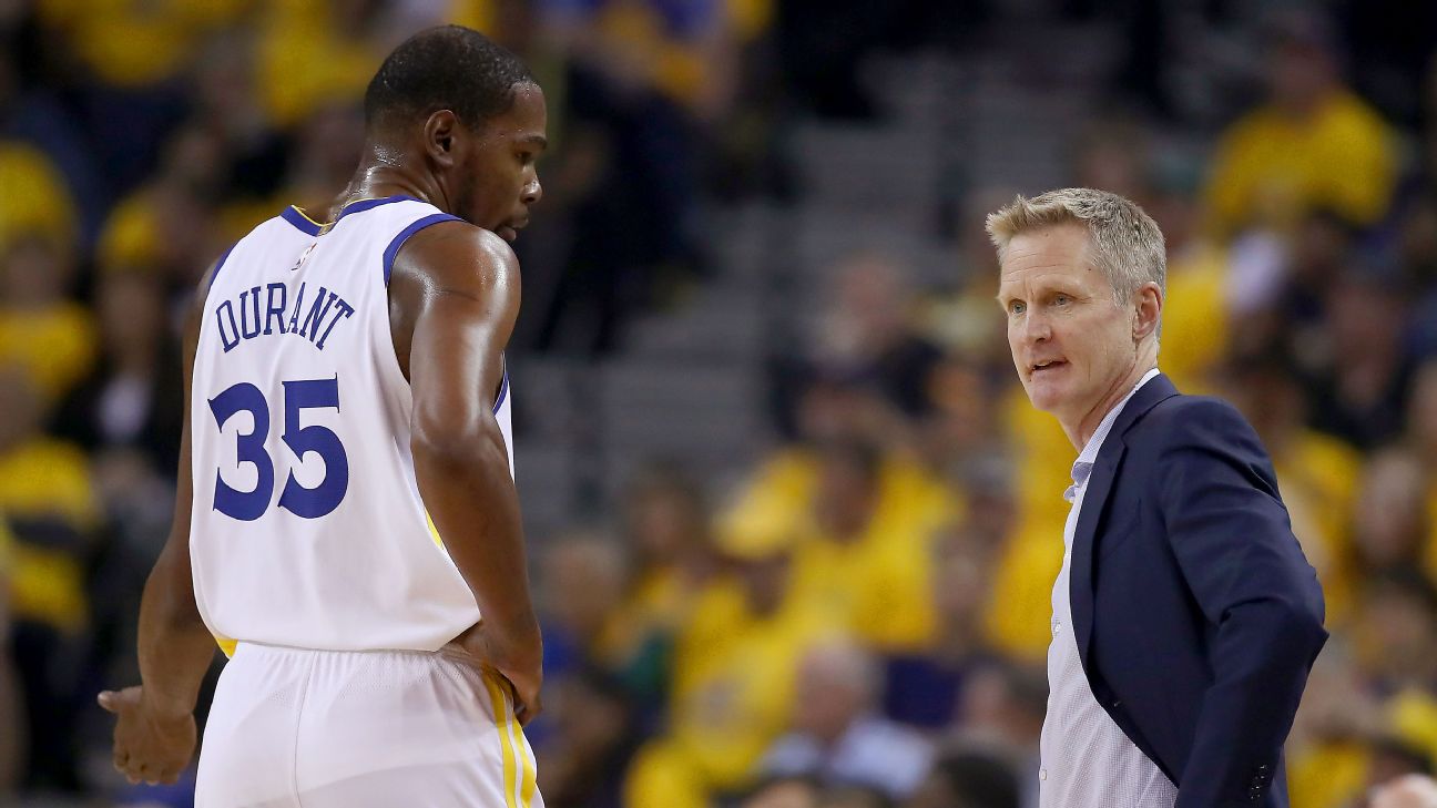 Kerr noted that it has yet to be determined whether Durant will travel with the Warriors to Toronto when the team charter takes off on Tuesday, but Kerr said Durant, who injured his calf in Game 5 of the Western Conference semifinals against the Houston Rockets, has yet to do any on-court work with his teammates as he continues the rehab process.