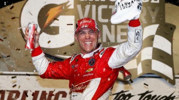 Earnhardt was still out front on that restart when Clint Bowyer got too close to Kurt Busch and spun him out -- Busch made sure to walk up the track and stare down Bowyer -- to force a second green-white-checkered finish.