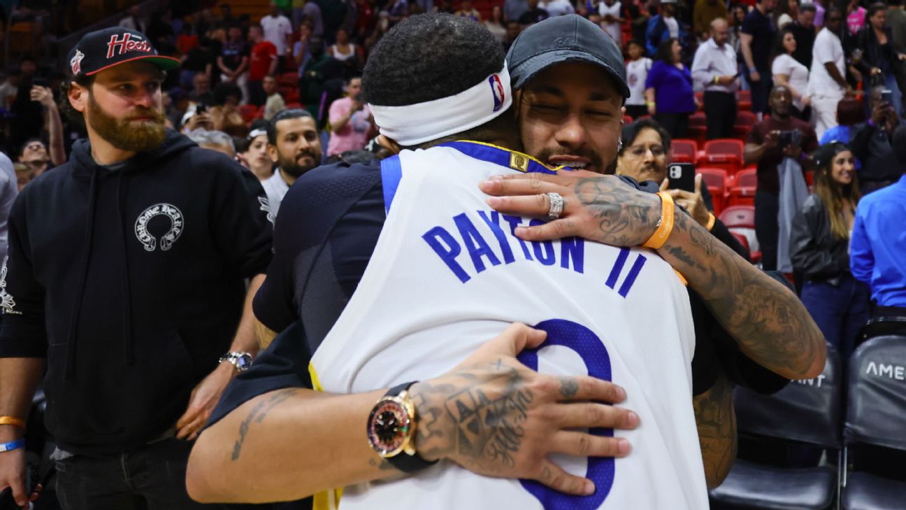 After the game, Golden State stars Klay Thompson and Draymond Green briefly chatted with Neymar. Warriors guard Gary Payton II and forward Gui Santos, who is from Brazil, also said hello.