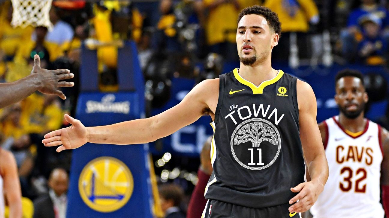 Despite nursing a hurt ankle and being a game-time decision Sunday night,Klay Thompsonstarted for theWarriorsand scored 20 points as Golden State took a 2-0 series lead over theCleveland Cavaliersin the NBA Finals.
