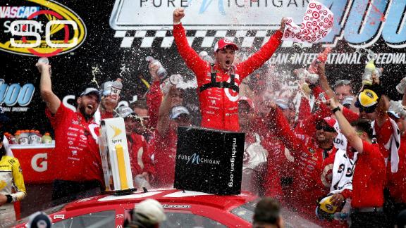 BROOKLYN, Mich. -- Kyle Larson raced to his first Sprint Cup victory on Sunday, taking the lead on a restart with nine laps remaining and holding off Chase Elliott at Michigan International Speedway in a duel between two of NASCAR's up-and-coming standouts.
