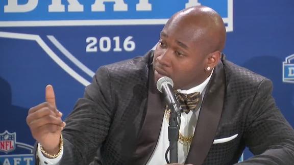 Tunsil spoke at a news conference after his draft selection in Chicago and an alleged hack of his Instagram and Twitter accounts.