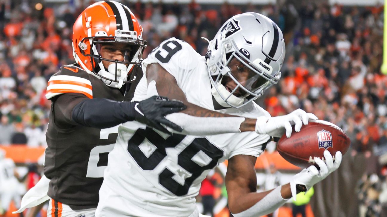 Edwards, 23, has 45 catches for 764 yards and four touchdowns in 28 career games (15 starts) since being selected by the Raiders in the third round of the 2020 NFL draft.