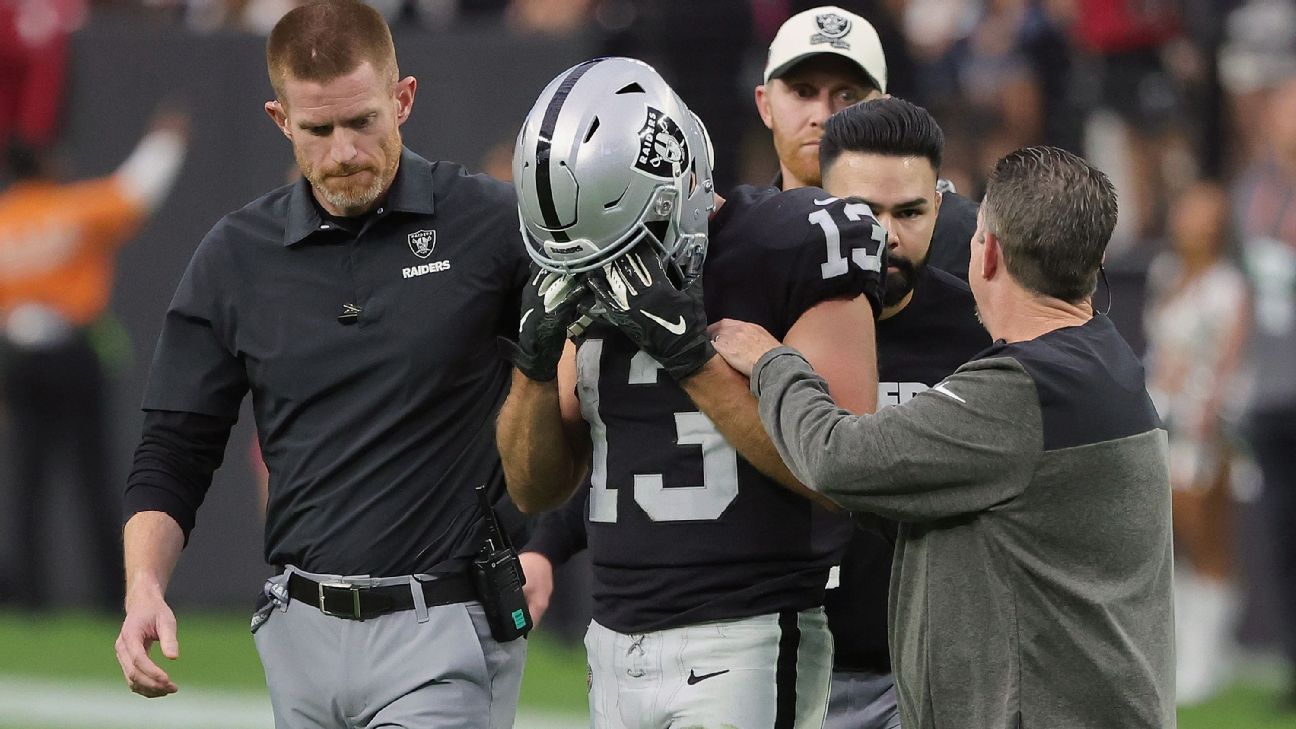 LAS VEGAS -- The Las Vegas Raiders will be without a pair of Pro Bowlers at the Tennessee Titans on Sunday as the Raiders ruled out their leading pass-catcher and leading tackler from last season.