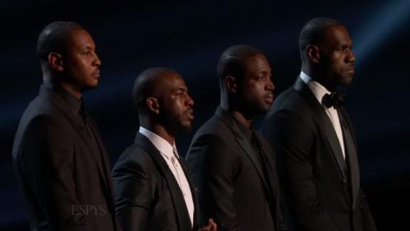 Carmelo Anthony, Chris Paul, Dwyane Wade and LeBron James took the stage together at the Microsoft Theatre in Los Angeles and urged their fellow athletes to be active socially.
