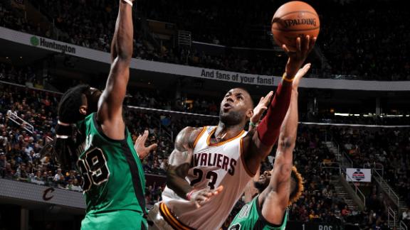 James hit a pair of milestones in the Cavs' 120-103 win over the Boston Celtics, first becoming just the third player in NBA history with 700 consecutive games with 10 points or more, joining Michael Jordan (866) and Kareem Abdul-Jabbar (787). James' streak began on Jan. 6, 2007, and has stretched for more than nine seasons.