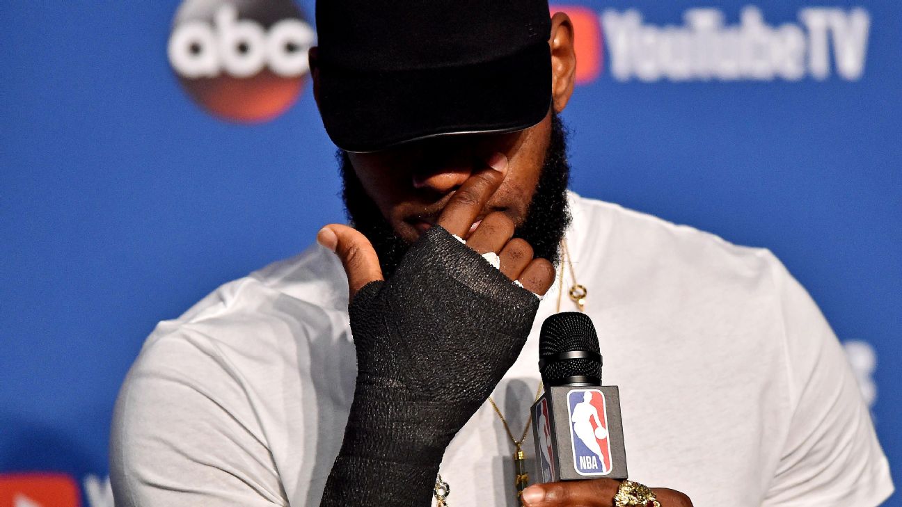 James had two MRIs during the series and wore a soft cast when he wasn't practicing, playing or in view of the media, sources said, so as not to give the Warriors a competitive advantage. He iced the hand after games and used a tennis ball to strengthen his grip and try to push out the swelling on off days, sources said.