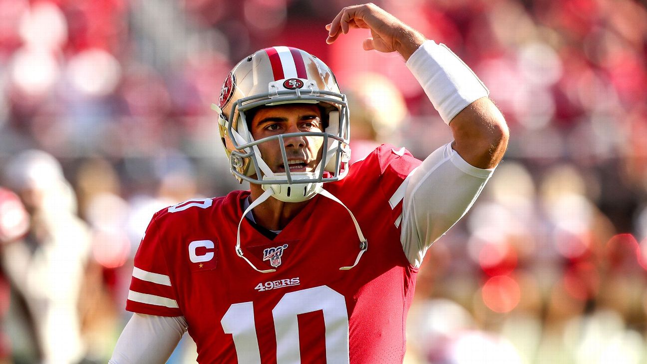 Garoppolo finished the day with a career-high 424 passing yards and four touchdown passes, marking the second time in three weeks the 28-year-old has thrown for four scores against the Cardinals. With the QB leading his team to a fourth-quarter comeback win despite missing left tackle Joe Staley, halfback Matt Breida, star tight end George Kittle and getting only limited snaps from top wideout Emmanuel Sanders, you could argue that this was a foundational game for Garoppolo in his 19th career start.