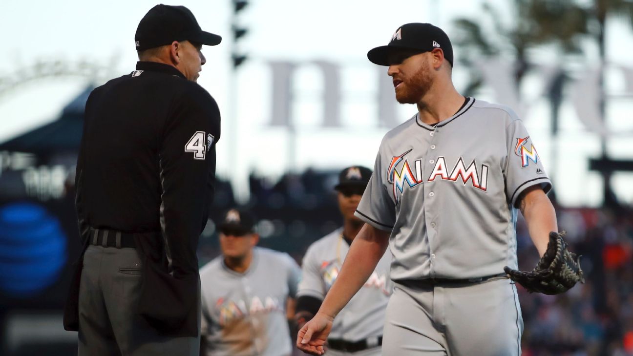 Giants starter Dereck Rodriguez plunked Marlins center fielder Lewis Brinson in the second inning. Plate umpire Andy Fletcher warned both benches, and Mattingly, upset that the warming came after only his player had been hit, came out to argue.