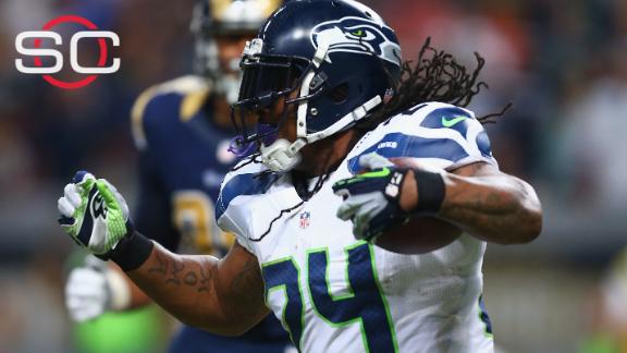 The Seahawks' offensive line was pushed back on the final play Sunday, and Lynch was stopped behind the line of scrimmage to seal St. Louis' win.br/]