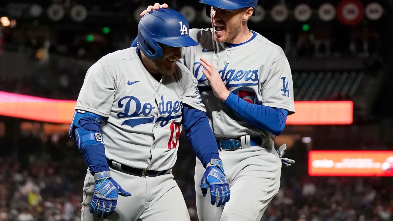 Los Angeles has won nine of the past 10 NL West crowns, including eight straight before the 107-win Giants edged the 106-win Dodgers on the season's final day of 2021. The Dodgers have also now won 14 of their past 15 games against the Giants, outscoring them 92-42 (+50). It's the first time since the teams moved to California in 1958 that one team has beaten the other 14 times in a 15-game span.