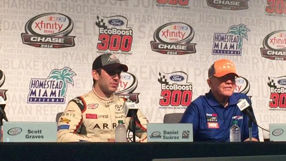 Suarez was last year's top rookie in the second-tier series. He began racing karts in Mexico and moved to North Carolina as a teenager to pursue a career at NASCAR's national level. He had to teach himself English by watching cartoons on American television, and Suarez moved through NASCAR's Drive for Diversity program to land a job with JGR.