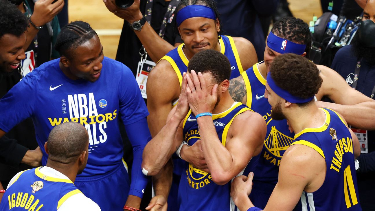 Stephen Curry didn't know whether to laugh or cry when the seconds ticked down at TD Garden in Boston on Thursday night. He appeared to be ecstatic -- broad smile, giddy -- a natural reaction to winning a fourth NBA championship with theGolden State Warriors. Yet in an instant, Curry sank to the floor with two seconds remaining in the 2022 NBA Finals. He cradled himself, dropped his head, rested his knees on his elbows and cried.