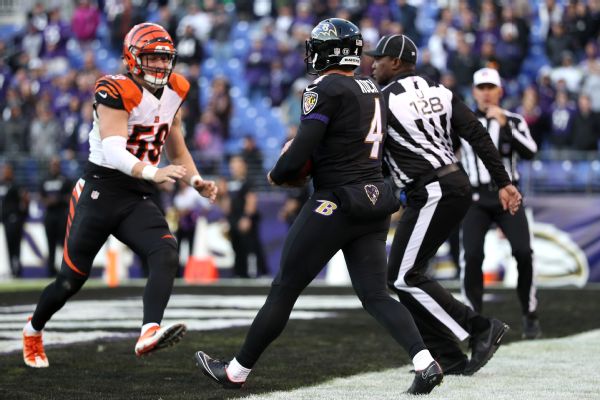 The Ravens intentionally committed holding on nine Bengals players to run off the final 11 seconds before punter Sam Koch conceded a safety and the game ended in a 19-14 Ravens win.