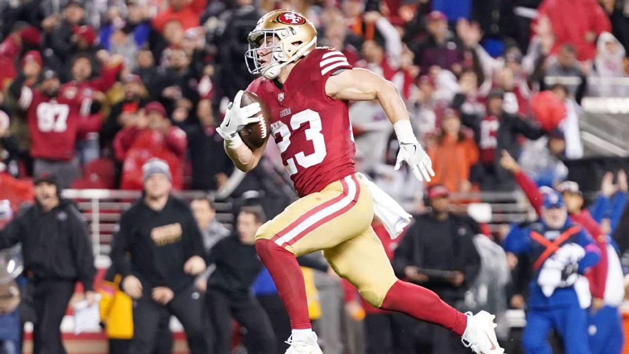 Liz: Gibbs has failed to record double-digit carries in back-to-back weeks, but he's still produced when given the opportunity, finding the end zone in each postseason effort. His explosiveness was on full display versus Tampa Bay, as he managed 74 rushing yards (including a 31-yard scamper) on just 9 carries (8.2 YPC) last week. As Daniel mentioned earlier, the 49ers run defense has been a top-five unit over the course of the 2023 season. Yet, I still think Gibbs is explosive enough to rip off at least one run of 15+ yards. The rookie has managed 16 such rushes this season (including the playoffs) which is tied with Derrick Henry for the 2nd-most in the NFL. Additionally, the 49ers have struggled to contain explosive rushers down the stretch. Ten of the 19 instances in which San Fran gave up runs over 15 yards occurred after Week 14 (Arizona really put it to 'em in Week 15). Aaron Jones' 108 rushing yard effort (which included a 53 yard run) further highlighted the issue last week.