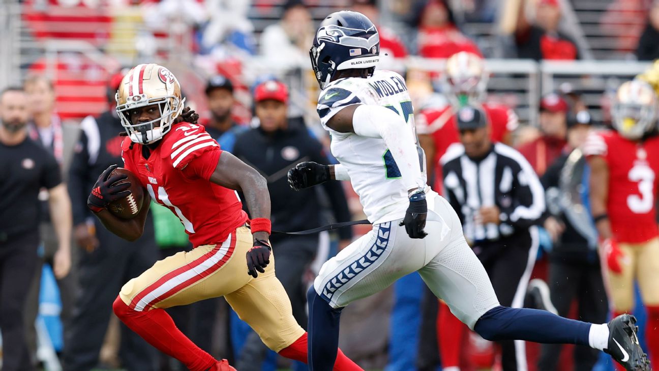Storyline to watch: Even at full strength, the Seahawks would have their hands full against a superior 49ers team that beat them three times last season by a combined score of 89-43. This game became even harder when quarterback Geno Smith and running back Kenneth Walker III suffered injuries on Sunday. Pete Carroll is optimistic that Smith can play through his triceps contusion, but Walker's status is more up in the air after he suffered an oblique strain and didn't play past the opening series. Seattle would turn to rookie second-round pick Zach Charbonnet as the RB1 in Walker's absence (and Drew Lock under center if Smith can't go). -- Brady Henderson