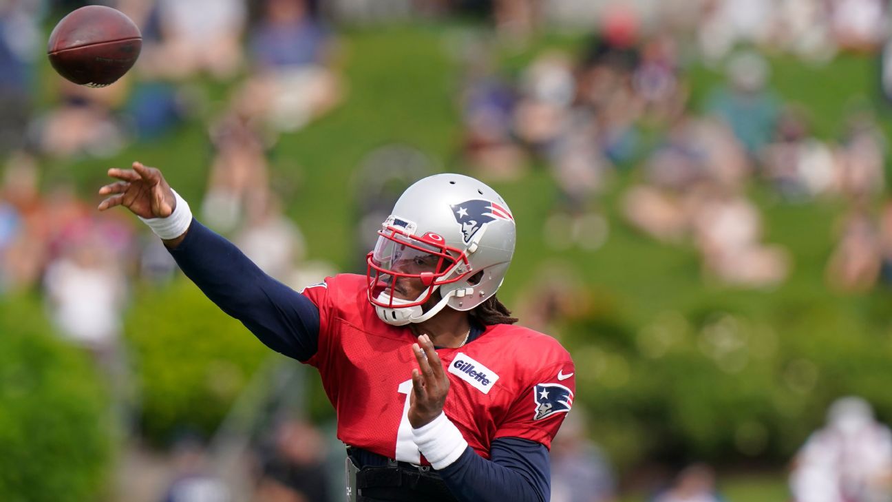 Cam Newton had one of his most productive days of training camp as the Patriots wore full pads for the first time. The starting QB was 11-of-17 in competitive 7-on-7 and 11-on-11 drills, with one of his best throws a 50-yard TD to receiver Nelson Agholor. He also ran the read-option, which ultimately set up a TD throw to tight end Hunter Henry, as the defense had to respect the run as Newton rolled out to his right. -- Mike Reiss