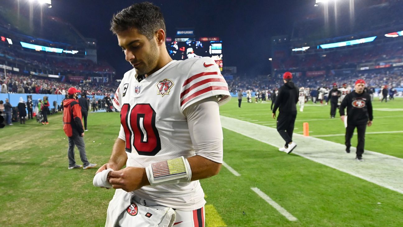 >Garoppolo is officially listed as doubtful for Sunday against the Texans as he works his way back from a right thumb injury. Coach Kyle Shanahan declined to name rookie Trey Lance the starter and said the team decided to rest Garoppolo all week before testing his throwing thumb on Saturday. The team's quarterback decision will be made depending on how that goes. Nate Sudfeld will be called up from the practice squad as additional quarterback insurance.-- Nick Wagoner