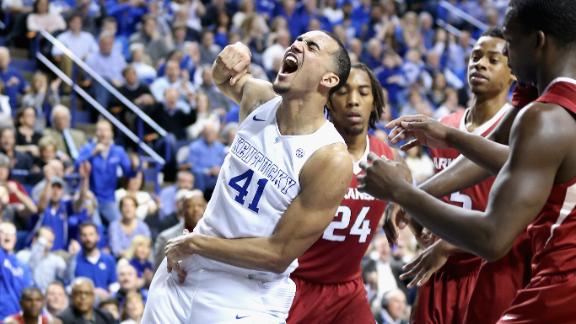 The Wildcats clinched the Southeastern Conference regular-season title, and the Razorbacks rarely had a chance after the early minutes, a common theme in many of Kentucky's wins over ranked opponents.