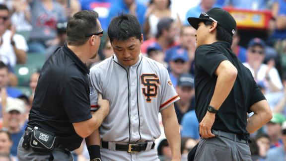 "Aoki is OK now," San Francisco manager Bruce Bochy said after the game. "We'll check him when we get back [home]. He's doing OK. He'll come in tomorrow, we'll have him evaluated and see how he is doing."