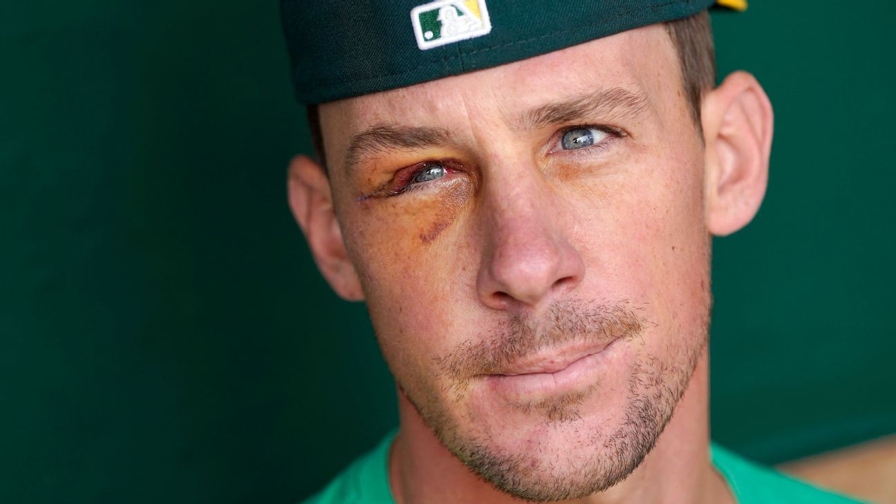 OAKLAND, Calif. -- His right eye still swollen and bruised after he was hit in the head by a line drive last week, Oakland Athletics ace Chris Bassitt is intent on pitching again this season.