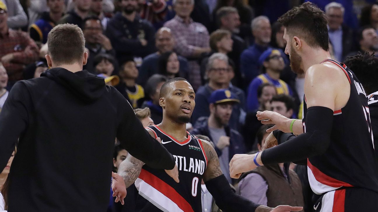 But just as the Warriors looked like they were about to start rediscovering some of their mojo up two with the ball in the last 15 seconds, Curry was trapped and had a pass deflected high for a turnover near midcourt. The Trail Blazers threw the ball up to Lillard, who nearly gave the ball away. But Al-Farouq Aminu chased down the loose ball and hit Lillard near the right corner for the latest Dame dagger over Curry.