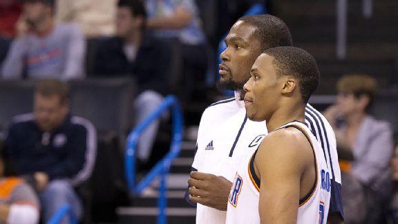 Durant, the reigning league MVP, is recovering from a stress fracture in his foot, while Westbrook is working his way back from a broken hand.