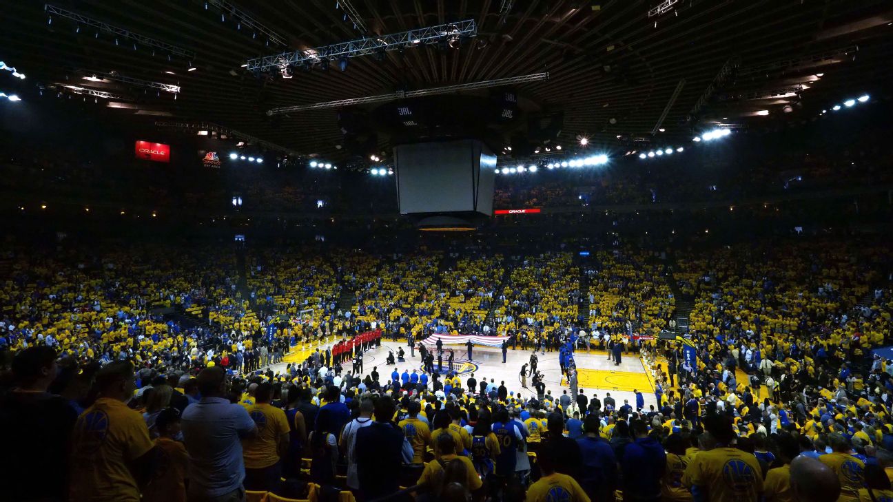 Oracle Arena paid tribute to the victims of the Santa Fe High School tragedy with a moment of silence before Game 3 between the Houston Rockets and Golden State Warriors.