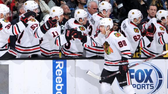 "Amazing to watch," Quenneville said of Kane. "Pretty amazing ... shift out, shift in, what he's been doing with the puck -- generating, creating. That line offensively for us has been the backbone of our team. He's been great. Can't say enough positive things about him or his play."