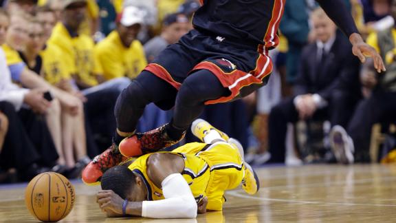 George and Wade collided while chasing a loose ball, and both came up grimacing. Wade held his left knee. George also grabbed at his knee, then said in his postgame news conference that he had blacked out and suffered blurred vision.