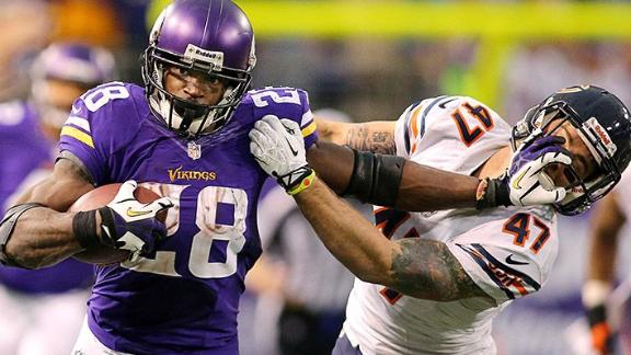 Peterson rushed for 1,266 yards -- 341 fewer than McCoy -- and 10 touchdowns last season, his seventh in the NFL. The six-time Pro Bowler made history in 2012, when he ran for 2,097 yards to fall just 8 yards shy of Eric Dickerson's single-season league record.br/]