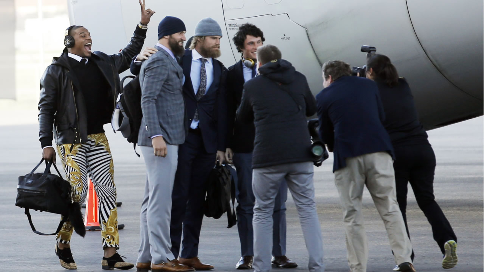 The AFC champion Denver Broncos arrived first around 3 p.m. They are led by future hall of fame quarterback Peyton Manning who is likely playing his final game.