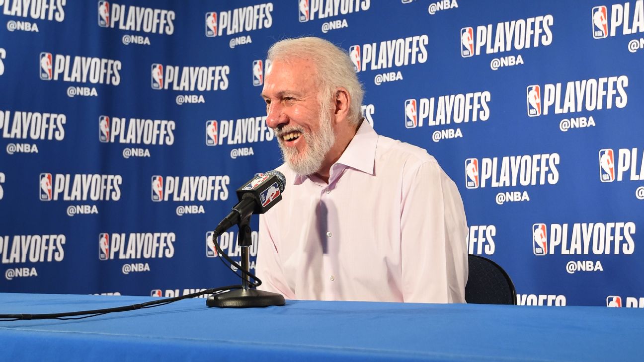 OAKLAND, Calif. -- Gregg Popovich picked up the small bottle of Gatorade next to the mic at the lectern and took a look, before quickly questioning the need to serve as pitchman of the product after the San Antonio Spurs' 113-92 loss to the Golden State Warriors in Game 1 of the first round of the Western Conference playoffs.