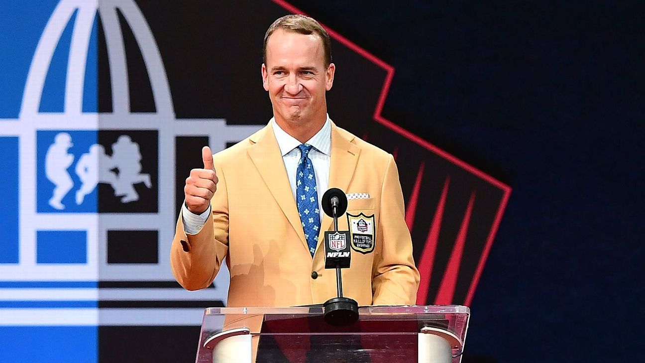 He said it: "Tonight's speech is the ultimate hurry, hurry. ... Ray [Lewis] just finished giving his speech and he started in 2018. ... I think it's pretty cool to be on the same team as Johnny Unitas and Slingin' Sammy Baugh. ... Dad, there's no one I would rather have or be more appropriate to present here. ... To Jim Irsay and the Indianapolis Colts, my gratitude to you is off the charts. ... To Pat Bowlen, the Bowlen family and the Denver Broncos organization, you took a chance on me at a crucial time in my life and I will never forget it. ... The future of this game is ours to shape, we just need to take tomorrow on our shoulders as easily as we donned our pads for games. ... God bless you and God bless football."