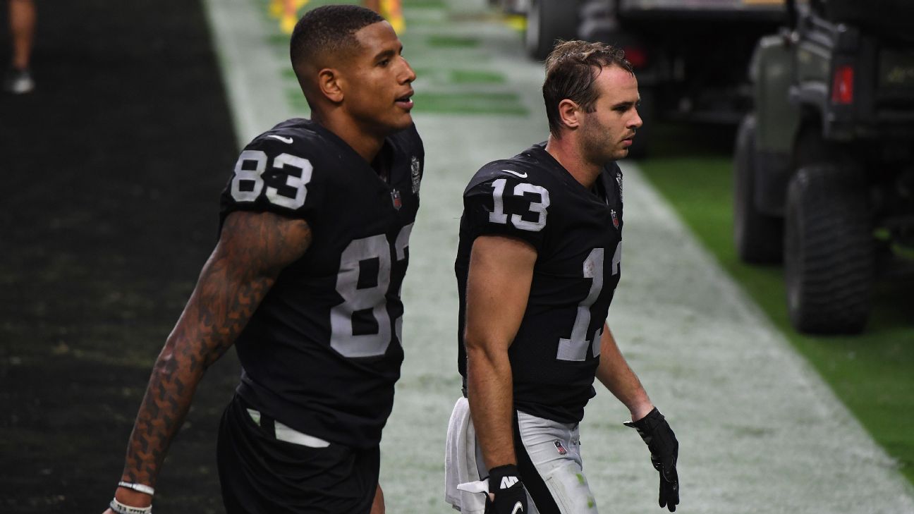 While both players signed contract extensions this offseason, the Raiders have had both active in the same game just three times this season and not since Week 5. Expected to be a major part of first-year coach Josh McDaniels' offense, the two have instead combined to catch 37 passes and one touchdown in a combined 11 games, after Waller had a franchise-record 107 catches with nine TDs in 2020 and Renfrow caught 103 passes and nine scores last season.