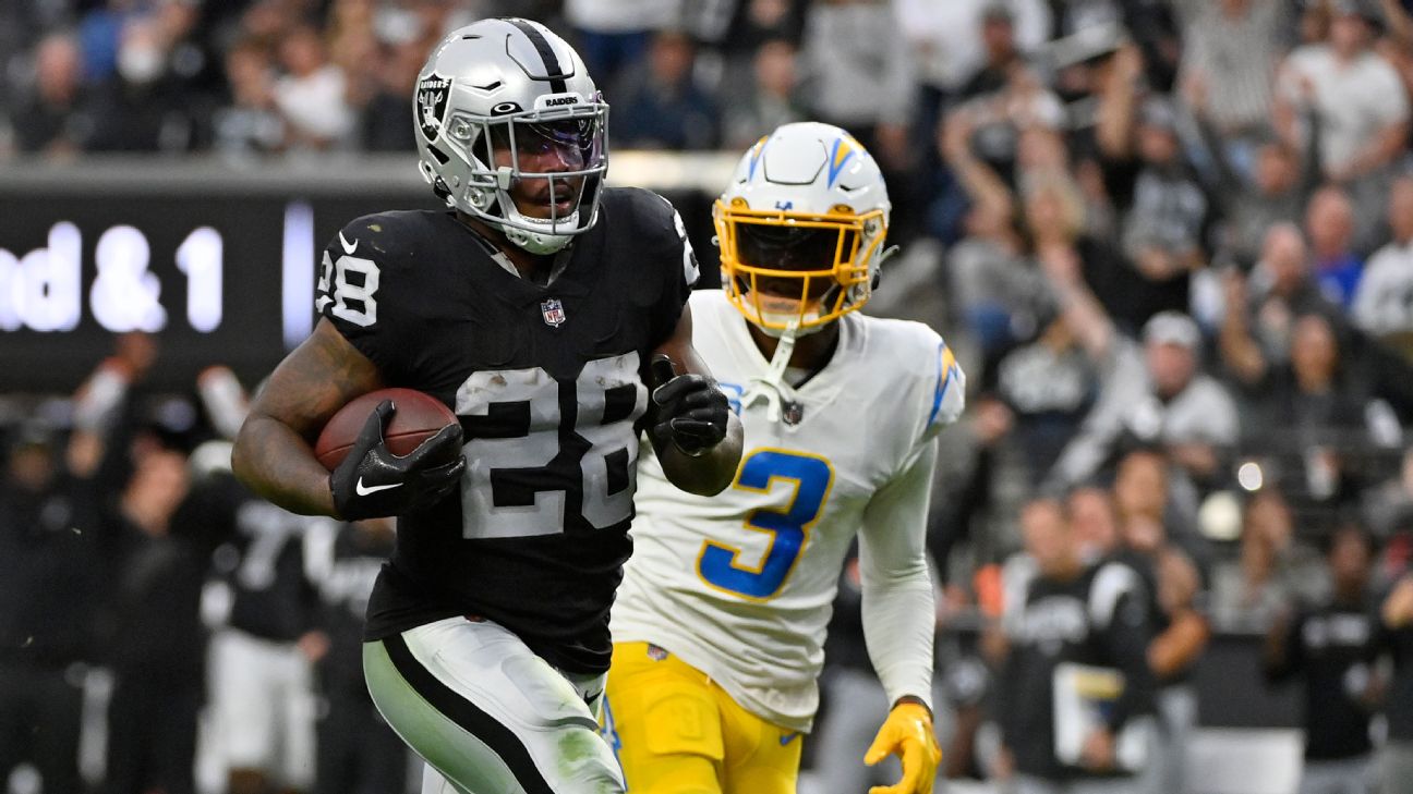 Fortenbaugh: I like the Las Vegas team total over 25.5 points. The Raiders are averaging 29.6 points per game over their current three-game win streak, rank top nine in the NFL in both scoring and yards per play and face a Rams defense that will be without Aaron Donald. Take note that L.A. has surrendered 26 or more points in five of its last six outings.