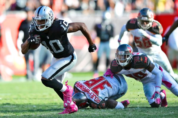 Roberts, the third undrafted receiver in franchise history to have multiple five-touchdown seasons, is also a talisman of sorts for Oakland. The Raiders are 9-0 whenever the third-year wideout from West Alabama scores a TD.