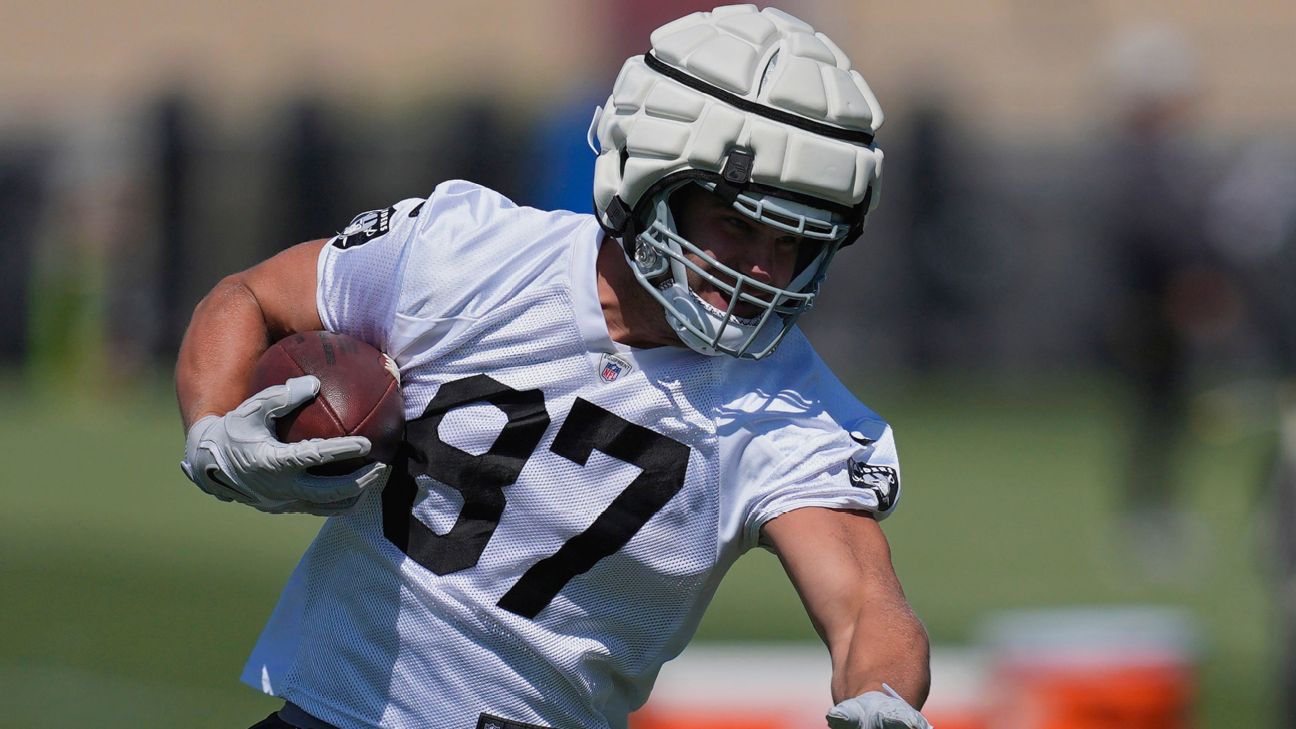 HENDERSON, Nev. -- Michael Mayer was anything but gregarious when the second-year tight end saw the Las Vegas Raiders use their first-round pick, No. 13 overall, in last month's draft on another tight end in Georgia's Brock Bowers.