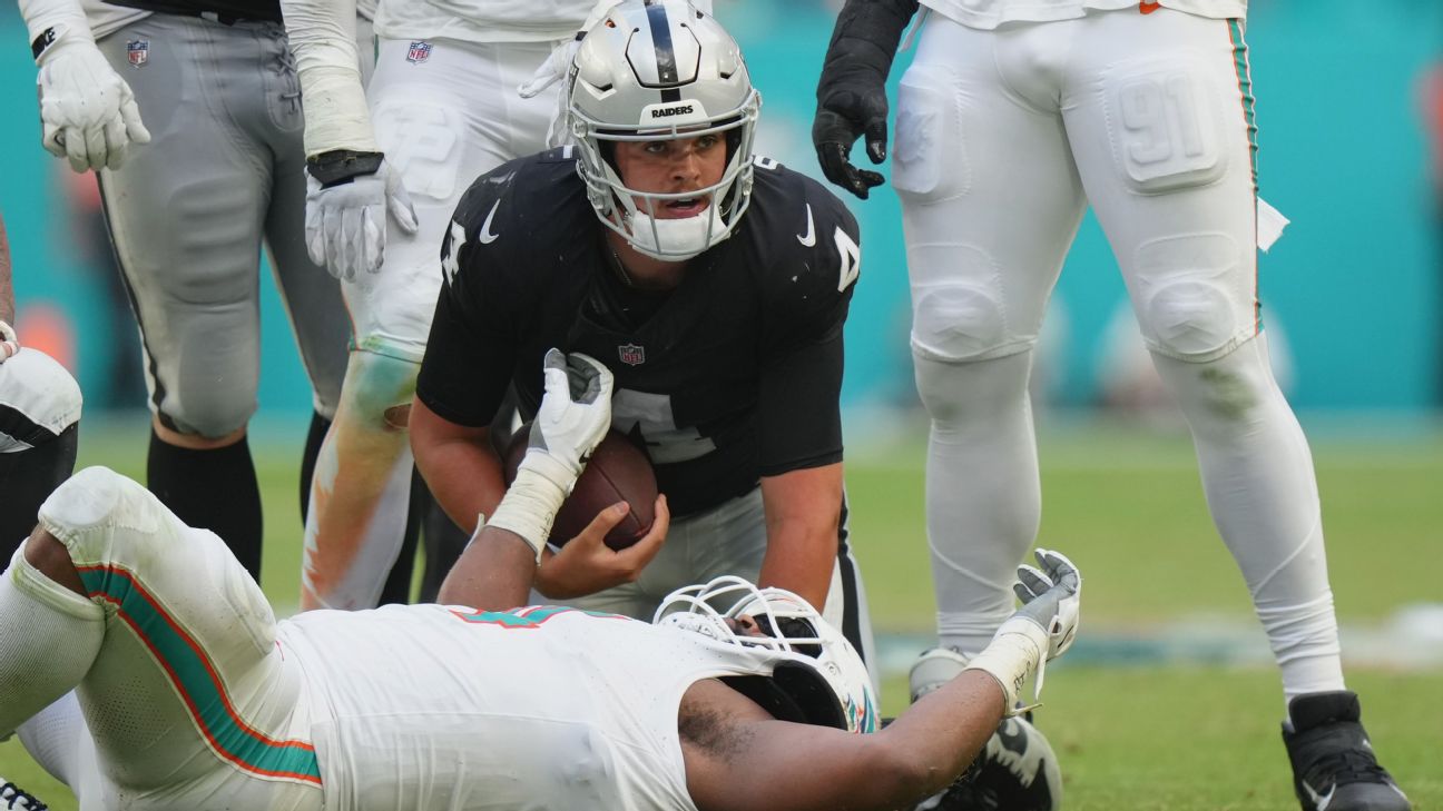 MIAMI GARDENS, Fla. -- Go ahead, chalk it up as a learning experience for a rookie quarterback, even as the loss goes on the record of the Las Vegas Raiders' Aidan O'Connell.