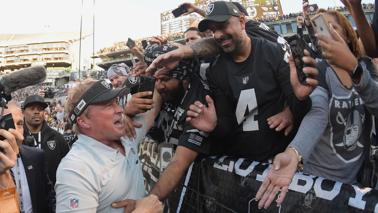"I guess in a lot of ways I was raised here, you know what I mean? It's the beginning of my NFL coaching career in a lot of ways, at least head coaching career. I just love it here. I had my first son here and I kind of have a lot of history here, and some of my friends, a lot of my friends, are in the Black Hole. A lot of my only friends are here. I don't have a lot of friends except the guys in the Black Hole. I get emotional talking about it. One day we were playing and it was pregame warm-ups, and I looked over there and I saw my mom in the Black Hole. I said, 'Somebody go get my mom.' My favorite memory, though, was really when Al Davis would come out and I would see him down in there in the Black Hole with the fans. That was really cool for me. I enjoyed that a lot."