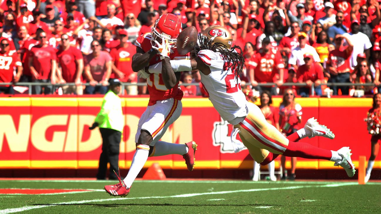 After exiting the game, Sherman was seen limping on the sideline and a 49ers staff member helped him to the locker room at halftime. Sherman had two tackles and broke up a deep pass intended for receiver Tyreek Hill.