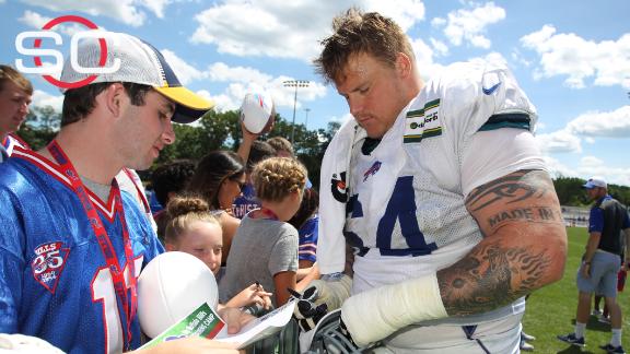 The Bills' right tackle job remains up for grabs between Cyrus Kouandjio and Seantrel Henderson.br/]