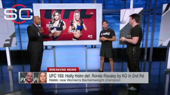 Rousey, a former judo Olympian, was unbeaten through 12 UFC fights before she met Holm. A win Saturday would have been Rousey's seventh title defense. Instead, Holm, a 34-year-old veteran boxer from Albuquerque, New Mexico, has the championship belt.
