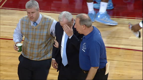 BOSTON --North Carolinacoach Roy Williams said he was feeling thankful to be alive and proud of how his team responded in the aftermath of a vertigo attack that forced him to watch most of the second half of the Tar Heels' 68-65 ACC win overBoston Collegeon Tuesday night from the locker room.