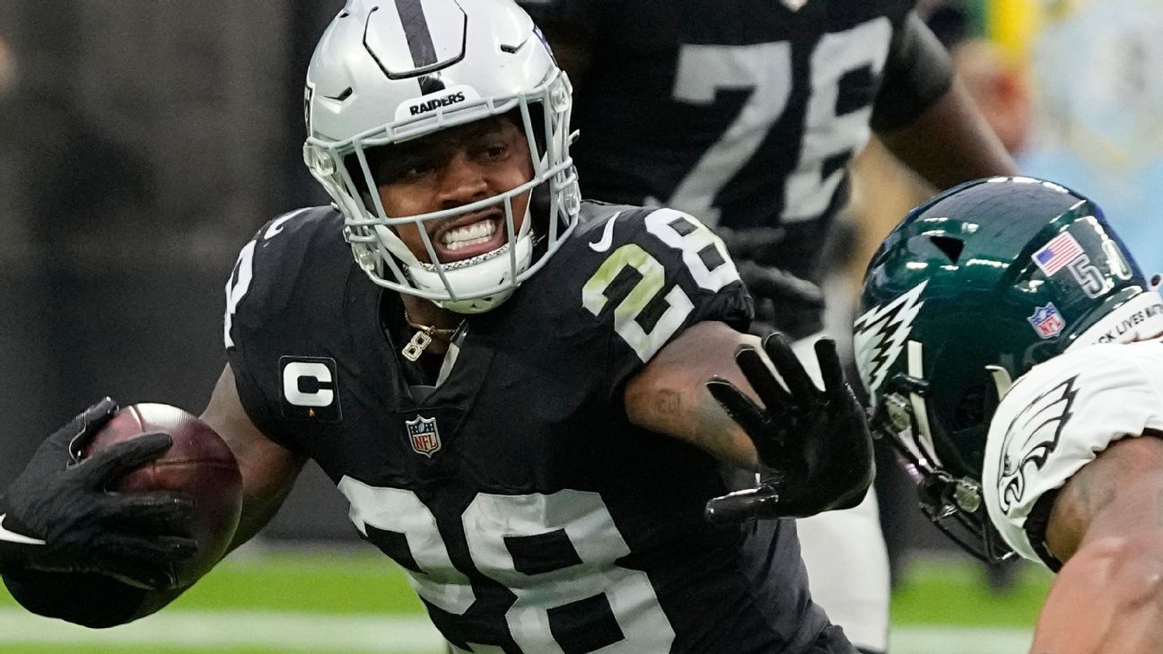 LAS VEGAS -- Philadelphia Eagles running back Miles Sanders (ankle) and Las Vegas Raiders running back Josh Jacobs (chest) were both knocked out of Sunday's game.