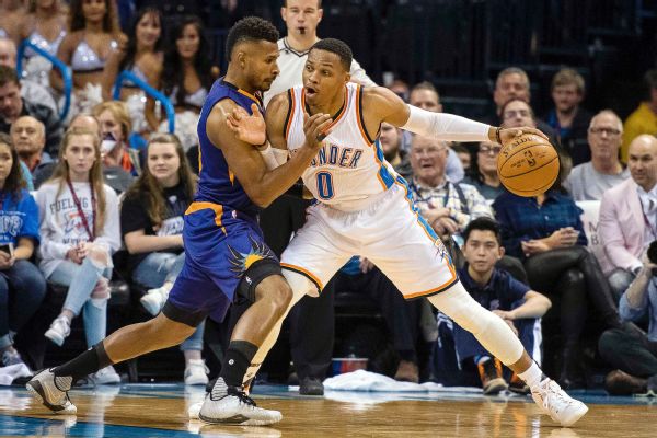 "My teammates, man," Westbrook said of his career night. "My teammates did a great job of spacing and catching and finishing, making some shots. My job is to find those guys. I mean, the ball is in my hands a lot, and my job is to find those guys and make it easy for those guys to be successful."