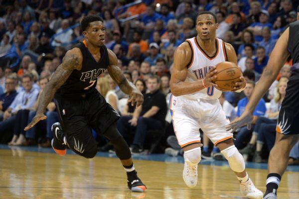 Westbrook played 45 minutes against the Suns. He displayed relentless spirit and energy throughout, sparking the Thunder from a 15-point deficit at the end of the first quarter.